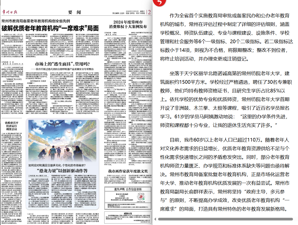 • 武進日報|常州紡院老年大學暨高校銀齡學習中心2025年...
